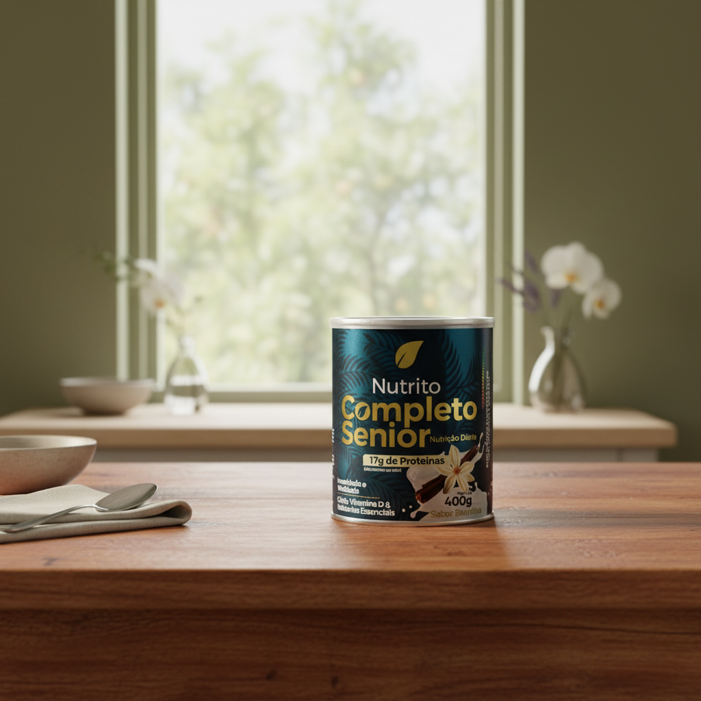 Nutrição Completa e Balanceada: Cada porção de 40g oferece 170 Kcal, 10g de proteínas, 2,5g de fibras e uma vasta gama de vitaminas e minerais essenciais, como Vitaminas A, D, E, C, complexo B, Cálcio, Ferro, Zinco, Magnésio, entre outros, conforme a ficha técnica Nutrito Completo Sênior Baunilha. Essa composição visa apoiar a saúde óssea, muscular, imunológica e energética, promovendo o bem-estar integral.